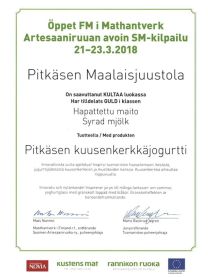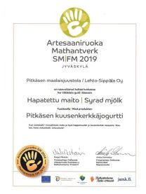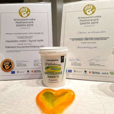 Olemme saaneet kolmesti tunnustusta Kuusenkerkälle ja kerran laktoosittomalle luonnonjogurtille Artesaaniruoan SM-kilpailussa vuosina 2018, 2019 ja 2022. Olemme siitä todella ylpeitä ja tunnustus osaltaan kannustaa jatkamaan jogurtin kehitystyötä.
